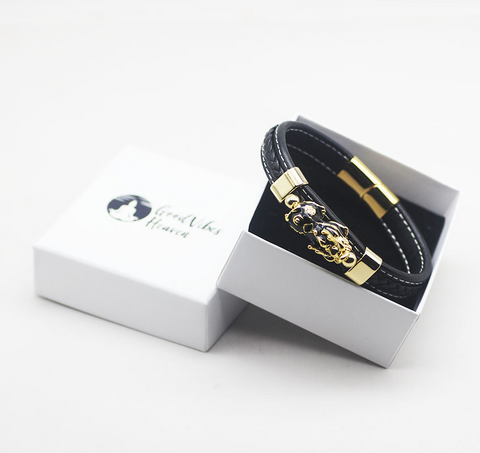 Pi Xiu Guardian Bracelet Lucky Gold Pixiu Charm Leather Men Women